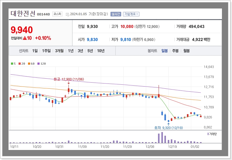 대한전선 주가는 대한전선이 5200억 원 규모의 유상증자를 진행한다는 소식이 전해져 투자심리가 크게 위축된 데 따라 급락세를 나타낸 바 있습니다.