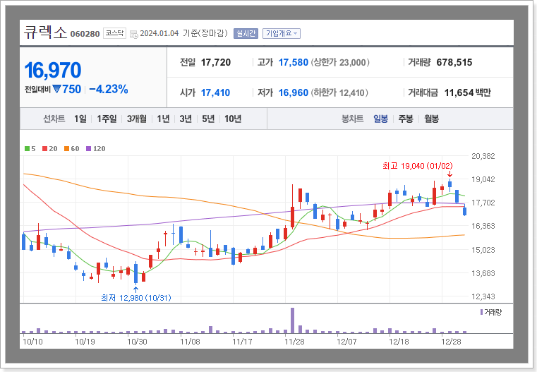 3. 큐렉소 주가